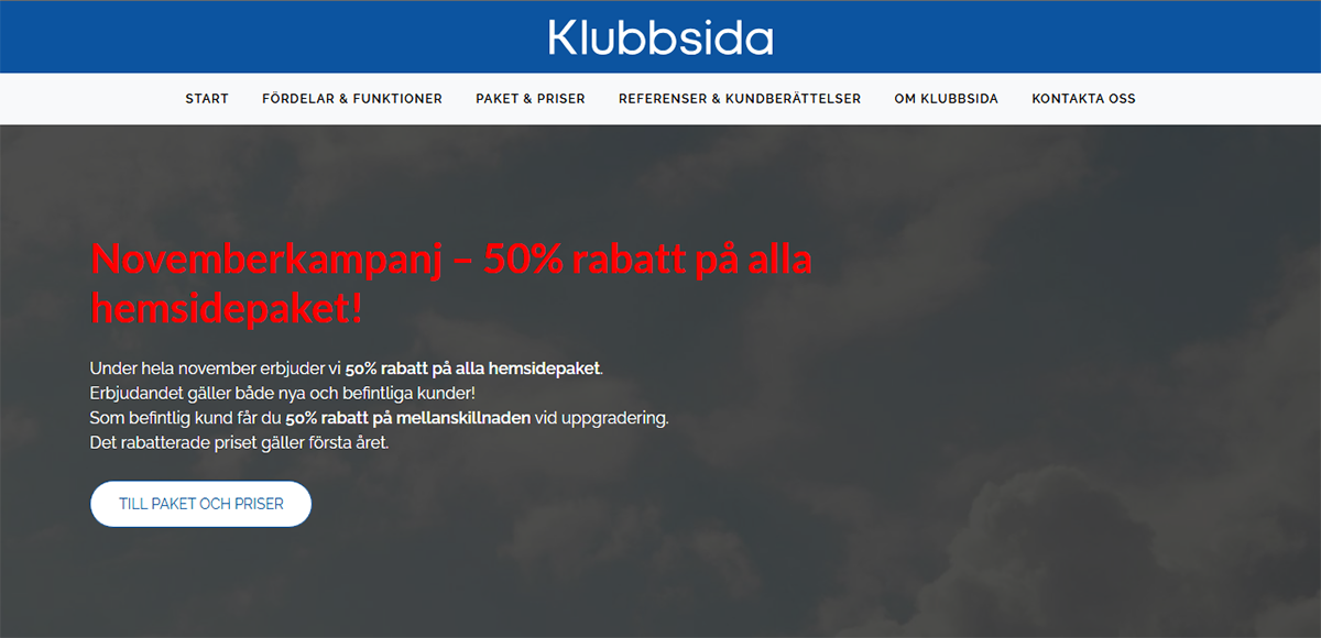 Under november erbjuder Klubbsida.se 50 procents rabatt på alla paket!