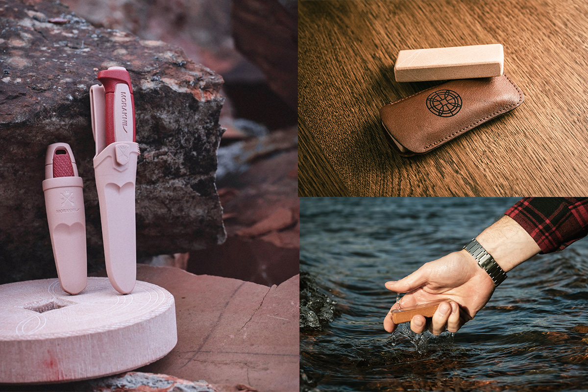 – Denna stensort har i urminnestider använts som slipsten och vi tillhandahåller idag brynen i två olika storlekar. Ett större bryne för hemmabruk/verkstad och ett outdoorbryne i läderetui att ha med sig i väskan på jakt/fiske eller äventyr. Läderetuiet är gjort av restmaterial av masdräkten i orsa. Läs mer här!